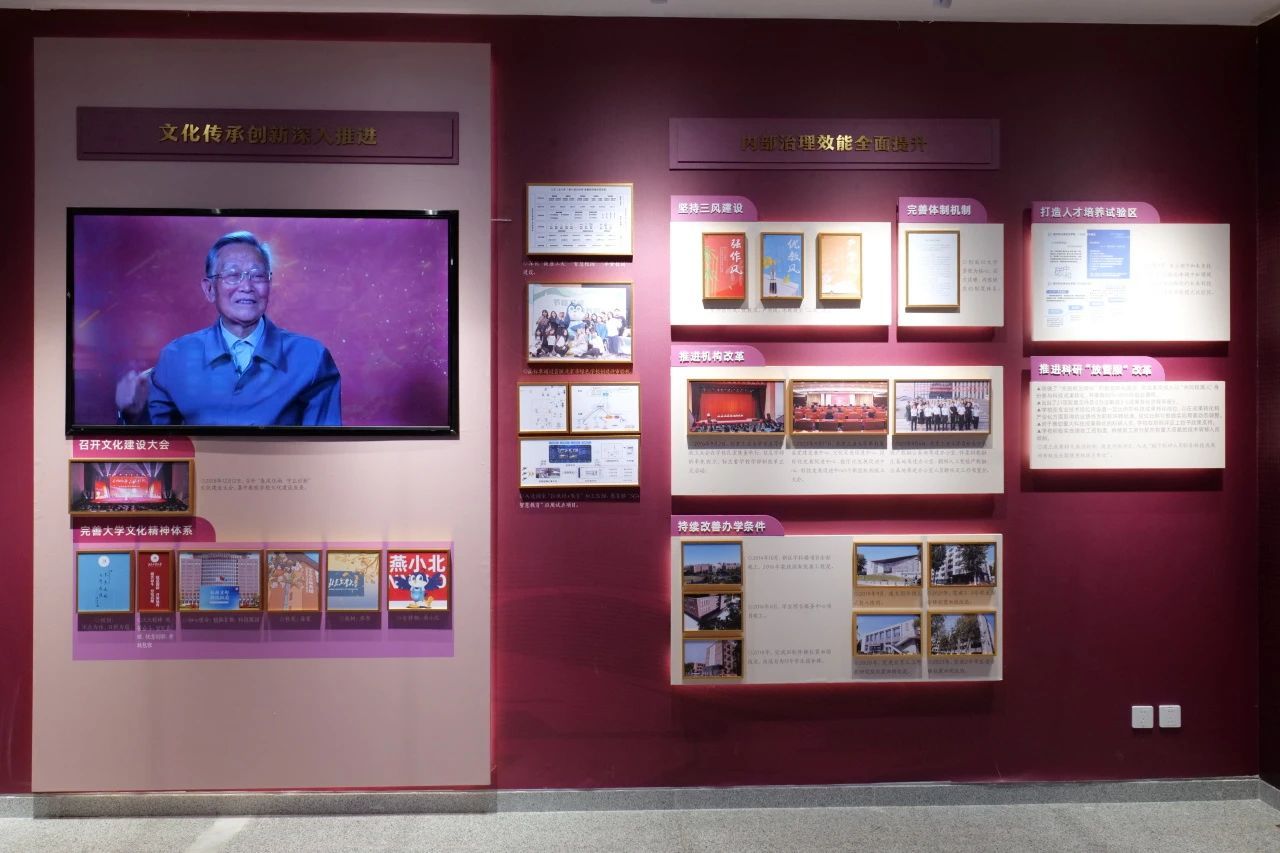 第五展区重点展示新时代学校内部治理取得的成效。持续深化综合改革,持续改善办学条件,坚持“三风”建设,推进文化传承创新。