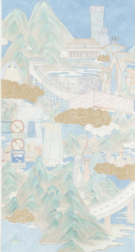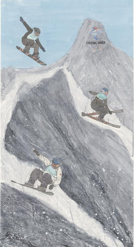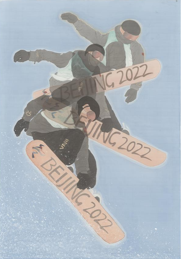 古今融通,交相辉映,传统文化的时代创新仍需在不断创作实践中摸索。冬奥题材的艺术创作,绝不仅仅是将冰雪自然景观与冰雪运动形象简单地组合或叠加,而是需要在深入理解奥林匹克精神的基础上,实现力与美“一加一大于二”的融合,是视觉上的绽放,也是精神上的升华。实验研究中丰富绘画语言与形式表现手段;对推动学科建设,培养优秀创作人才具有重要价值。同时广泛传播和普及中国连续举办夏季奥运会与冬季奥运会的内在深刻含义,推动艺术表现与体育运动的双驱动发展。用鲜活的形象带动全世界了解中国奥林匹克精神,使传统文化得以传承的同时能够与时俱进地完美承载了北京冬奥会的愿景和中国的文化底蕴。