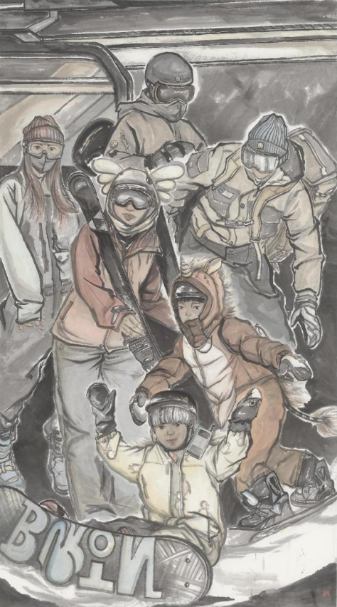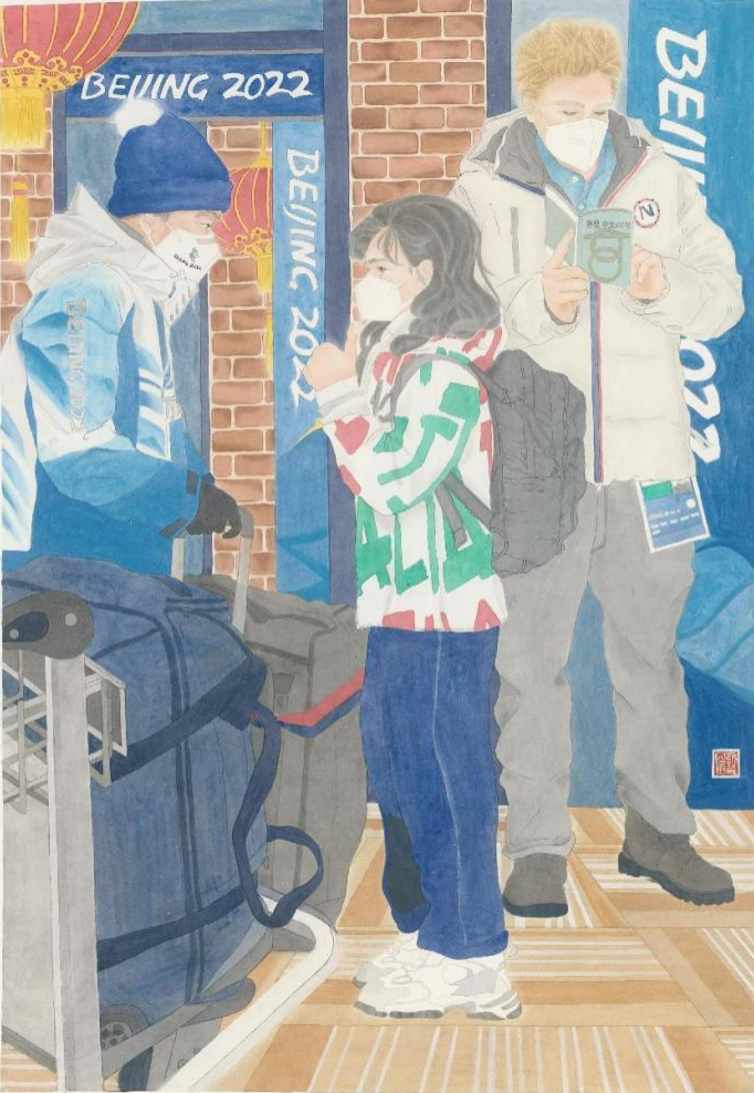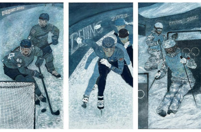 北京冬奥会讲述的不只是“高大上”的故事,也是家门口的滑雪场、身边的志愿者、孩子们的滑冰课……在绘画创作中以更加从容、开放、自信的画面响应奥林匹克“更快、更高、更强——更团结”的精神号召。艺术设计学院绘画系学生们作为市属高校艺术专业的大学生,在栾良才老师和王煜老师的带领下,结合“带动三亿人参与冰雪运动”的美好愿景,通过画笔勾勒出中国百姓日常生活的生动图景。期望借由以冬奥会为主题创作为冬奥盛会送上最诚挚的祝福,展现中国当代大学生的青春理想和时代使命。