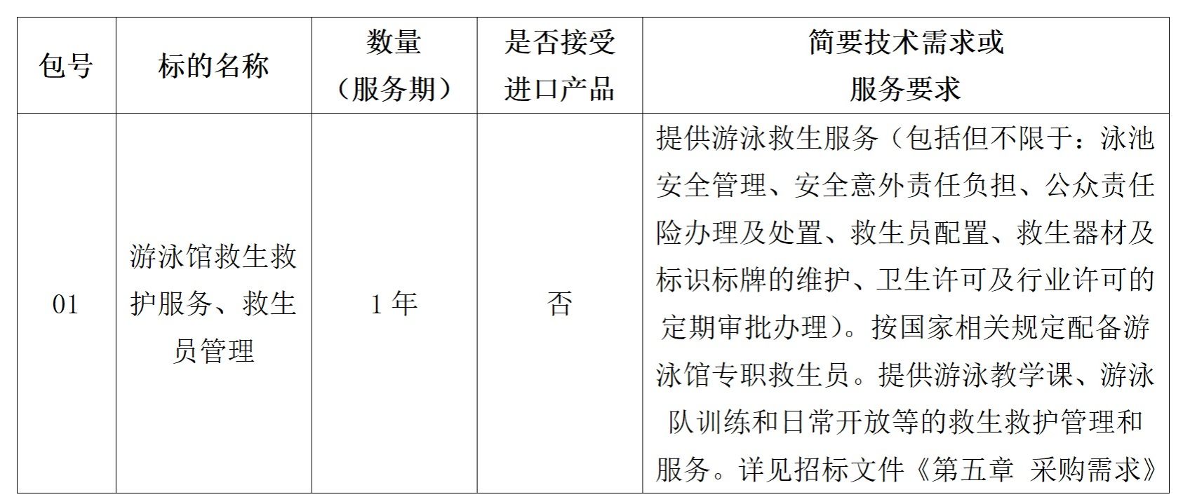 项目名称:游泳馆救生救护服务、救生员管理