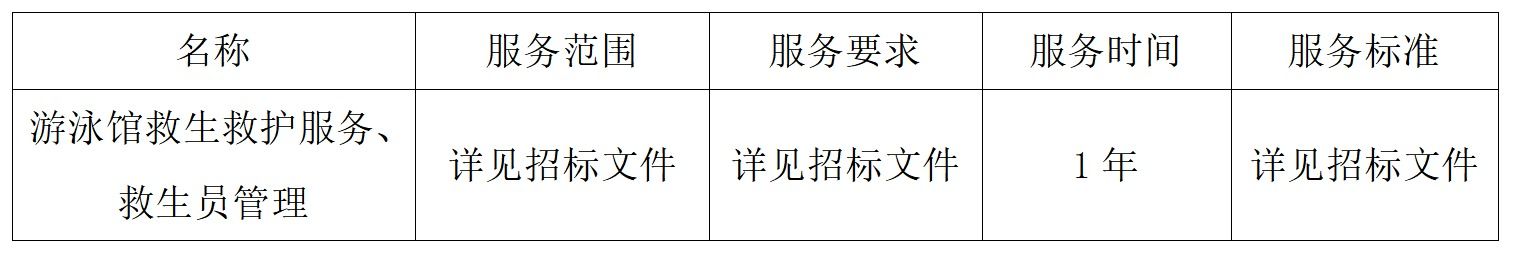 二、项目名称:游泳馆救生救护服务、救生员管理