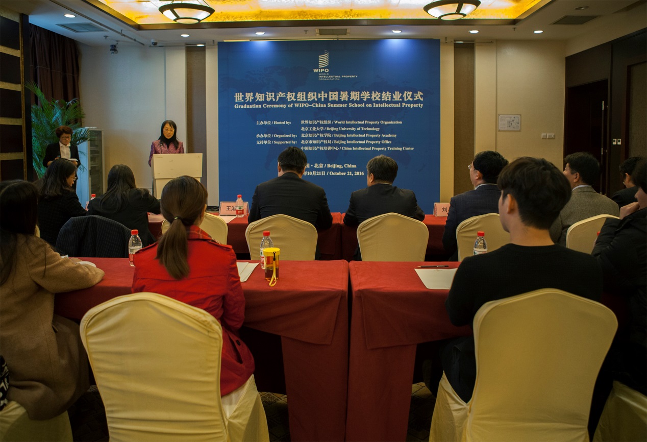 10月21日,世界产权组织2016中国暑期学校结业仪式在我校举行。仪式由北京知识产权局巡视员王淑贤主持,世界知识产权组织中国办事处主任陈宏兵、我校柳贡慧校长出席仪式。