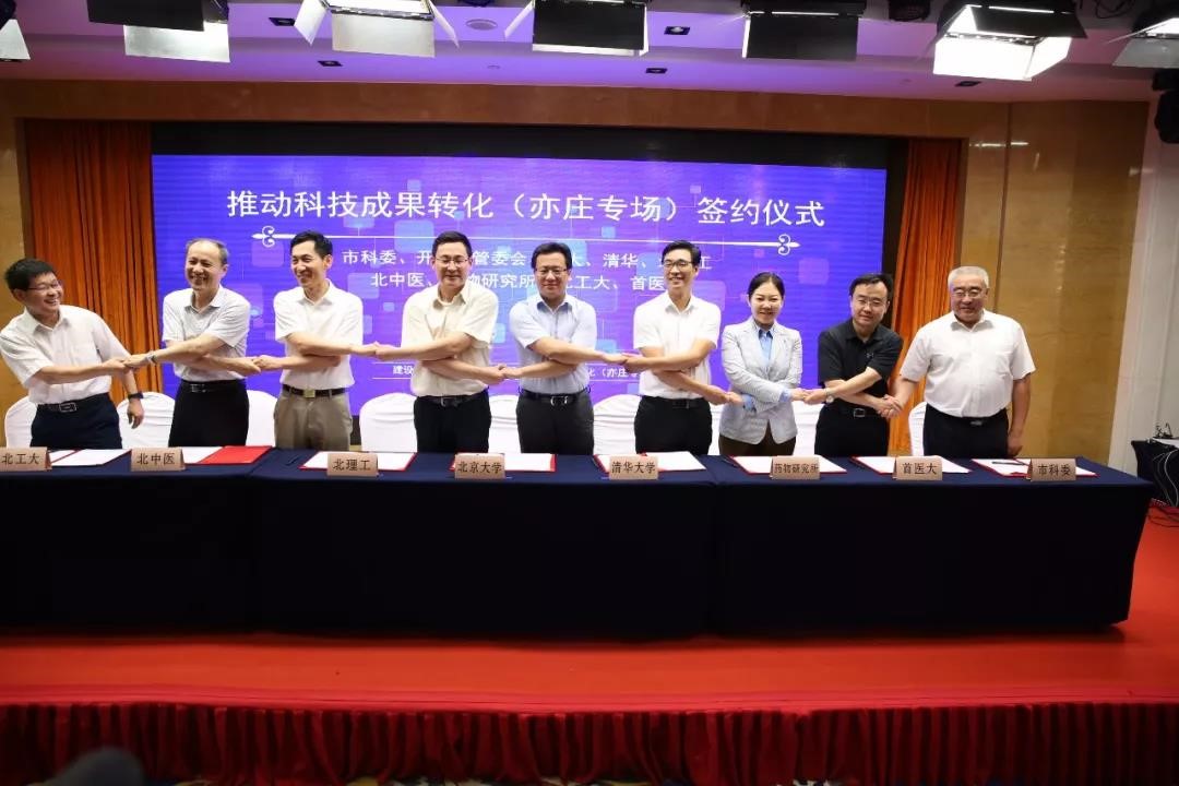 北京市科委、北京经济技术开发区管委会与北京大学、清华大学、北京理工大学、北京中医药大学、中国医学科学院药物研究所、KY开元集团官网、首都医科大学等7家高校院所签署协议,共同推进科技成果在经开区转化落地,北京高校技术转移联盟同时成立。