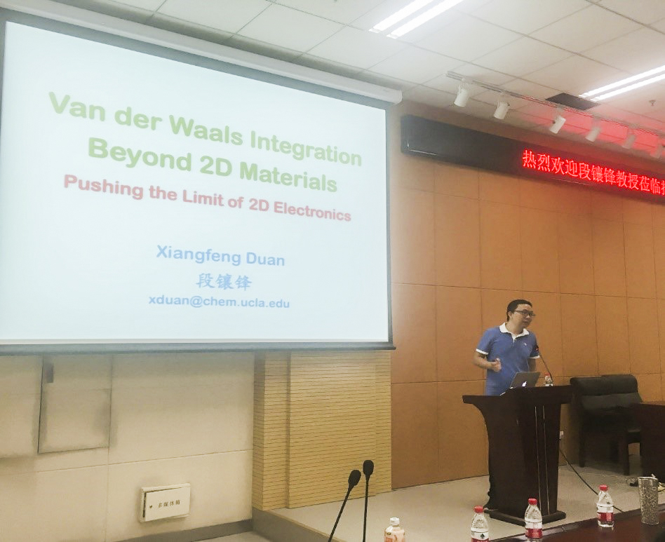 段镶锋教授是美国加州大学洛杉矶分校(UCLA)的终身教授。他的主要研究方向是二维半导体材料的性能及相关光电、电学器件性能的研究,先后主持美国国家科学基金和美国国家卫生研究院基金等多项重要课题。报告主要介绍了二维材料在范德瓦尔斯异质结方面的最新进展,展示了其成果的科学性、重要性及创新性。报告结束后,段教授和师生们进行了交流互动。