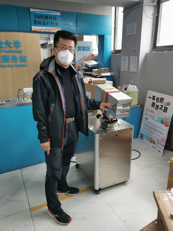 这两天的校园中,有一个新的消杀设备活跃在快递驿站、食堂和浴室等场所,它是由我校材制学部刘伟副研究员参与研发的微波激发强紫外消杀设备。